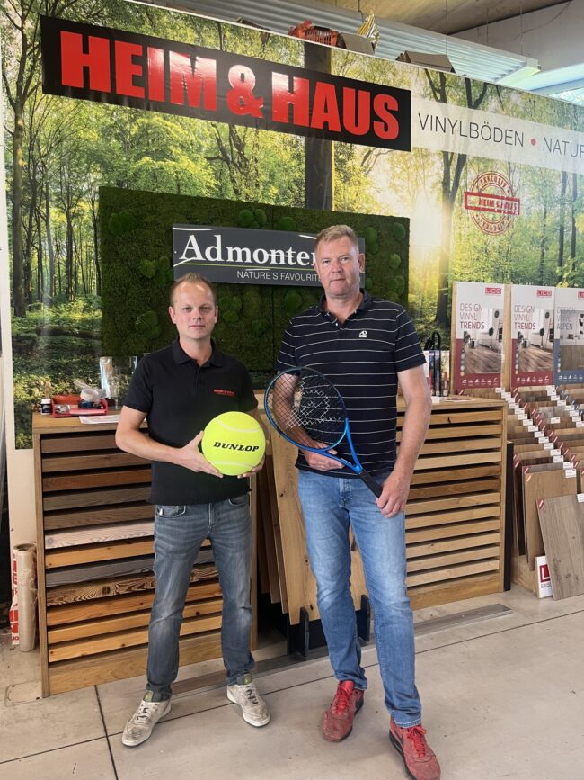 Mit Heim&Haus Amstetten präsentiert Turnierdirektor Thomas Dappers ein weiteres Mitglied der Sponsorenfamilie rund um die LADIES OPEN Amstetten powered by SPORTLAND Niederösterreich. Geschäftsführer Martin Pechhacker (links) stattet die Böden und Wege im Turniergelände (vor allem im VIP-Bereich und auf den Verbindungswegen zum Eventbereich) mit dem richtigen Belag aus.