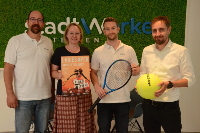 Die Stadtwerke Amstetten (am Bild v. li. Andreas Halbmayr, Sonja Deinhofer, Bernhard Scheich und Geschäftsführer Jürgen Hürner) sind bereits seit 1893 der Energieversorger der Region – und das mit 100% erneuerbarer Energie aus Österreich. Als stabiler und verlässlicher Partner sorgen die Stadtwerke auch im Zuge der LADIES OPEN Amstetten für den richtigen Drive – als…