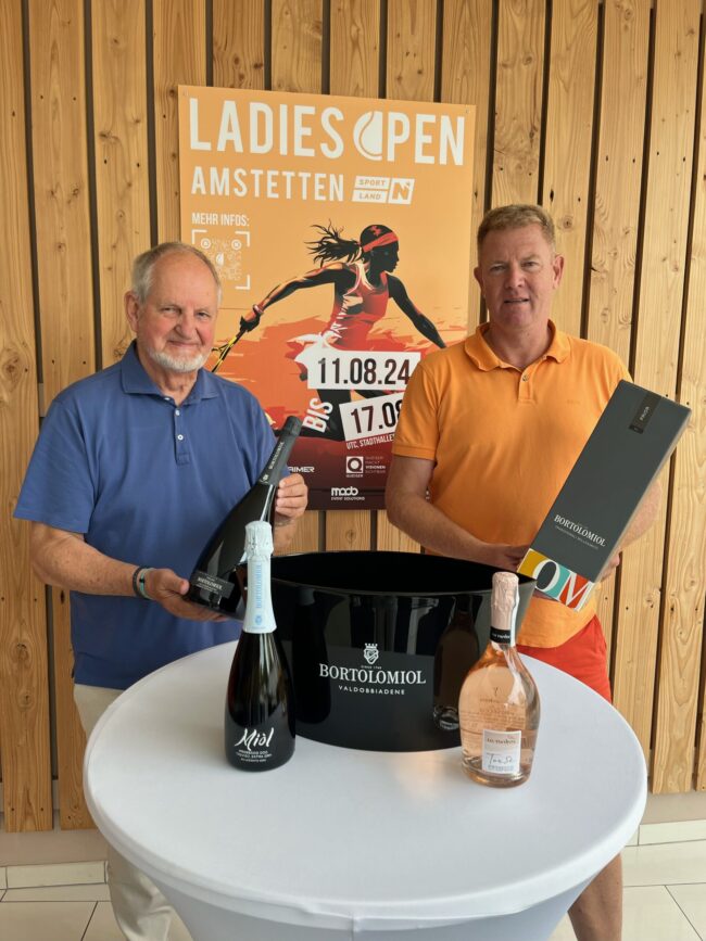 Mit Claus Müller haben auch hochwertige Prosecci in Amstetten Einzug gehalten. Dass dieses beliebte “Prickeln” bei den LADIES OPEN Amstetten presented by SPORTLAND Niederösterreich natürlich nicht fehlen darf, ist klar. Turnierdirektor Thomas Dappers und Claus Müller freuen sich darauf, im August an der Prosecco-Bar gemeinsam anstoßen zu können. Und auch für die Besucher gilt: Salute!…