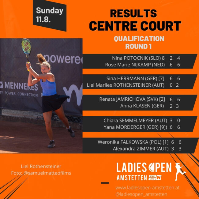 Der erste Tag der LADIES OPEN Amstetten, powered by SPORTLAND Niederösterreich, stand ganz im Zeichen der österreichischen Nachwuchshoffnungen, die sich gegen die internationale Klasse bewähren wollten.  Teilerfolge verbuchten Lokalmatadorin Chiara Semmelmeyer und die Tirolerin Anna-Lena Ebster, die gegen ihre routinierten Gegnerinnen, vor allem im ersten Satz, lange mithielten, sich dann aber doch geschlagen geben mussten. …