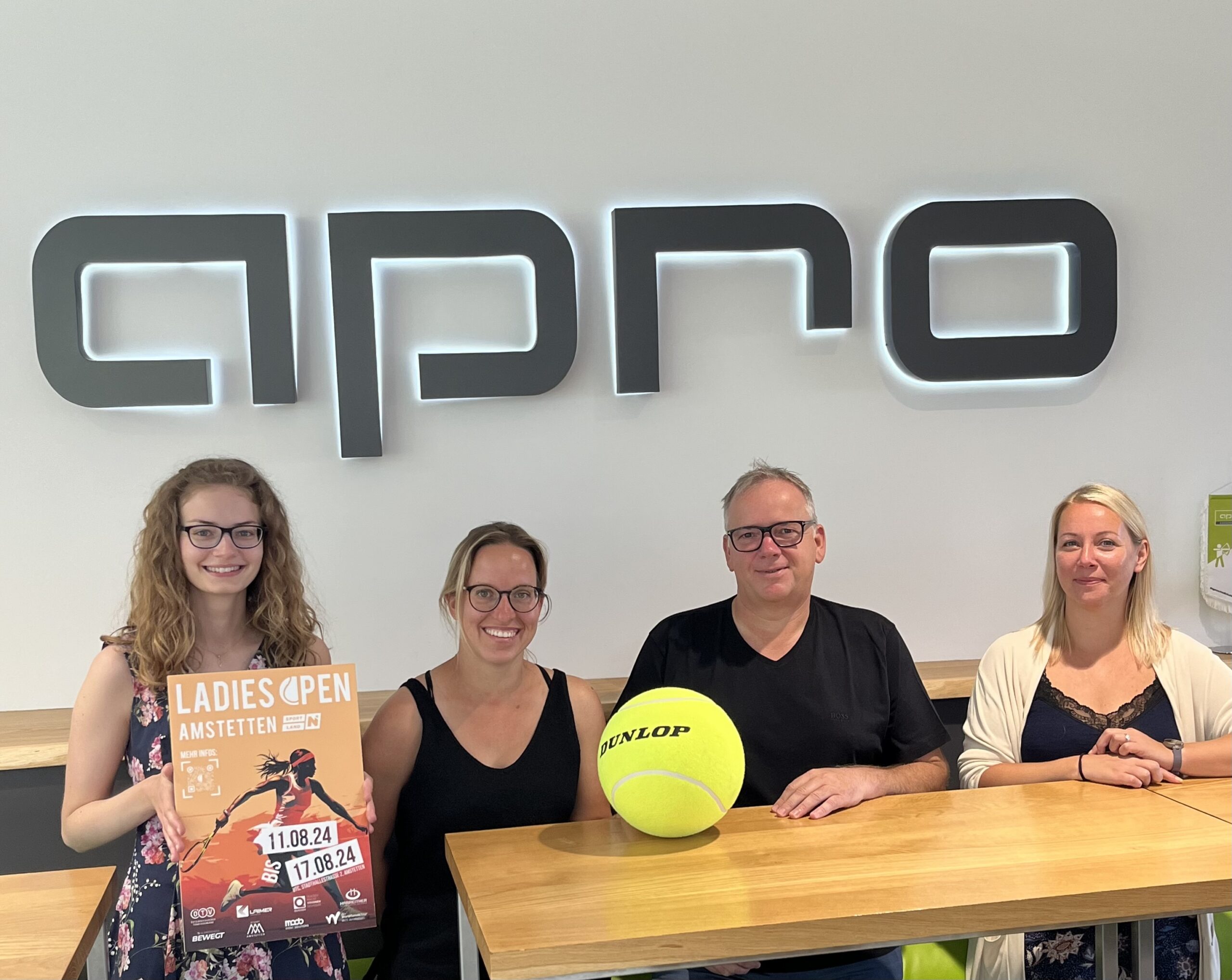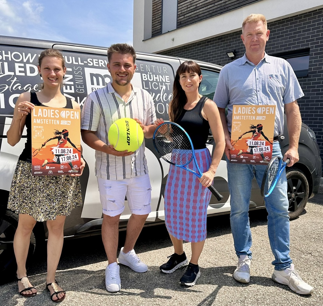 Ing. Christian Laimer (3.v.l.) ist nicht nur selbst begeisterter Tennisspieler, sondern auch mit der Lasertechnik Laimer GmbH als Sponsor für die LADIES OPEN Amstetten powered…