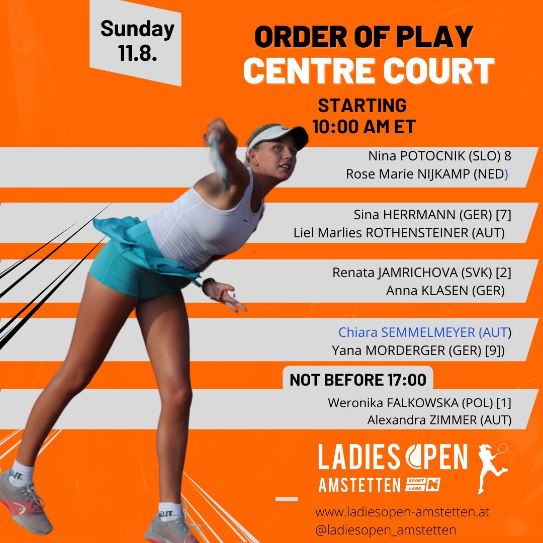 Am Sonntag, 10. August, wird bei den LADIES OPEN Amstetten powered by Sportland Niederösterreich die Finals im Einzel- und Doppelbewerb gespielt. Im Einzel freuen wir…