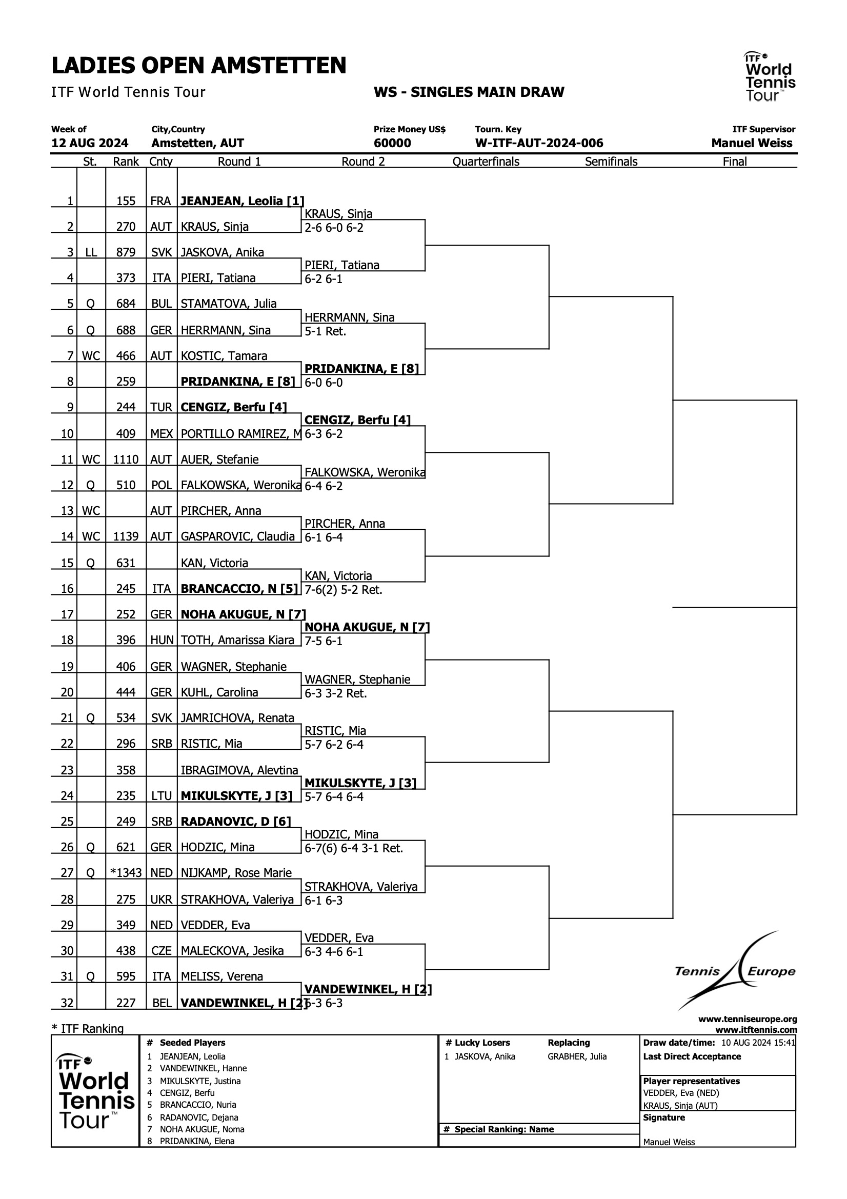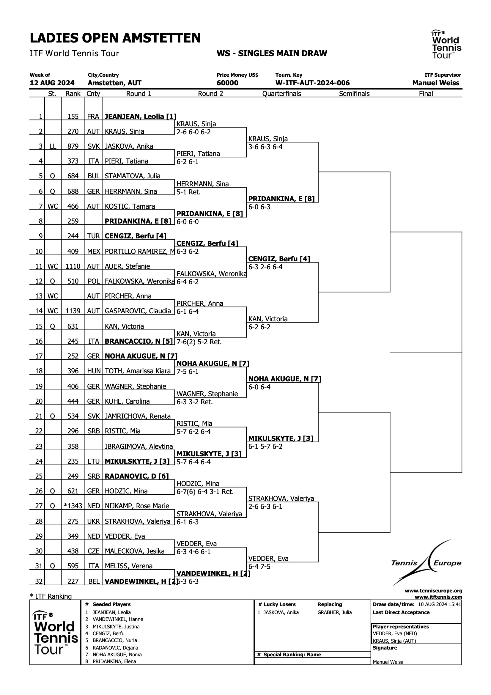 Die 20-jährige Belgierin Hanne Vandewinkel kommt in bestechender Form nach Amstetten. 2024 siegte sie bereits beim ITF-W35 Turnier in Hammamet, Marokko, und feierte auch ihr…